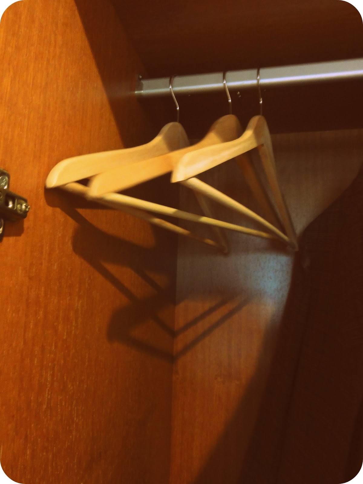 Tem também uma parte livre para pendurar os casacos que usamos nos últimos dias ou das visitas. O bengaleiro é pequeno e não dá para pendurar tudo (sobretudo se forem casacos mais pesados), assim o armário tem sempre cruzetas/cabides livres para pendurar o que for necessário.