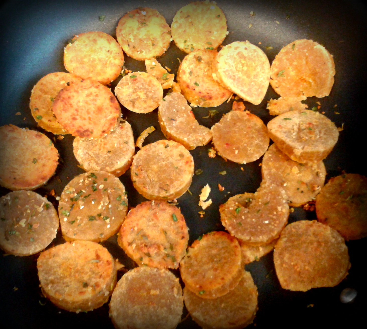 Um chouriço de soja que após partir às rodelas, aqueço ligeiramente numa frigideira sem gordura, uns vegetais grelhados (na foto pimentos e curgete) com manteiga vegetal e temperados com flor de sal, tomilho e sementes de sésamo, uns pimentos padrão salteados que adoro (menos aqueles que são demasiado picantes!) e para finalizar a minha querida broa de Avintes. Só falta mesmo servir, sentarmo-nos à mesa e conversarmos enquanto saboreamos estas iguarias…