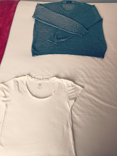 - Dobro a roupa sempre em rolinhos pois assim não fica amarrotada e mal chego ao hotel estendo na cama (muito bem esticadas como se estivesse a passar a ferro) ou penduro nos cabides