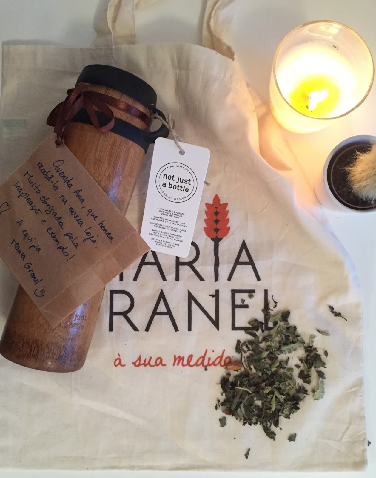 Quanto à embalagem, é apenas utilizada uma etiqueta feita de fibras de bambu de origem sustentável e as instruções (no interior da garrafa) vêm num papel bem pequeno.